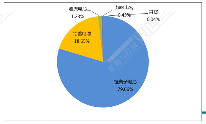 中国已投运电化学储能项目中的锂离子电池累计装机规模最大,达到1268.4MW,所占比重为79.7%。铅蓄电池和液流电池分列二、三位,所占比重分别为18.6%和1.2%。