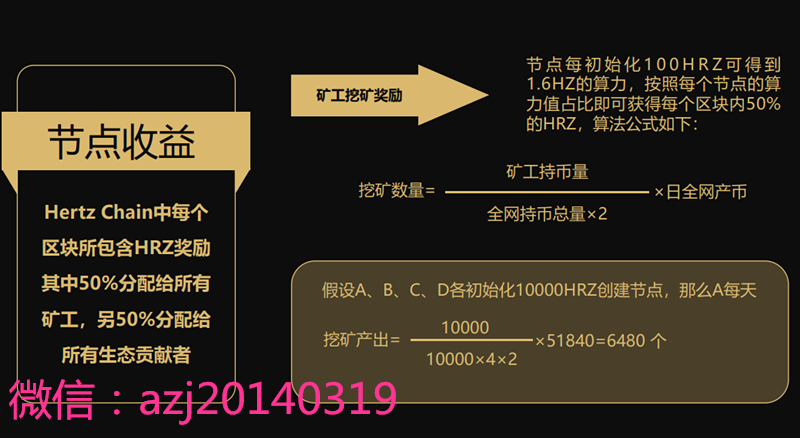 矿工收益如何获得?参与者在创建节点时,须将100或100整数倍的HRZ打入申请节点的HRZ地址并进行初始化节点。一旦节点搭建成功后,其中49% HRZ进入锁定状态,作为保证金存在。这是为防止51算力攻击,当矿工收益达到两倍时按照比例销毁,剩余解除节点状态。