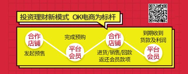 OK电商作为新型电商预购/预售交易平台,一方面为电商卖家提供一种更高效的店铺资金来源新渠道,另一方面为广大财富保值增值需求者提供更安全更省心的投资理财新模式。用户仅需在OK电商平台预购下单,由平台发布商品预售信息的店铺承担商品在加价销售、物流、售后及可能出现的退换过程中出现的一切风险和损失,预购用户只需等待销售周期结束即可全额、按时获得预购商品的利润及预购成本。