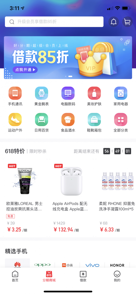 好分期如何让大家安心购物呢?一方面是产品类型更加丰富,针对年轻白领用户陆续接入了包括智能手机、户外运动、包包,配饰、手表、家电、美妆等商品品牌,满足年轻消费者的购物需求习惯。另一方面还有限时秒杀、大牌特卖等产品分类,更加细分他们了的消费欲望。
