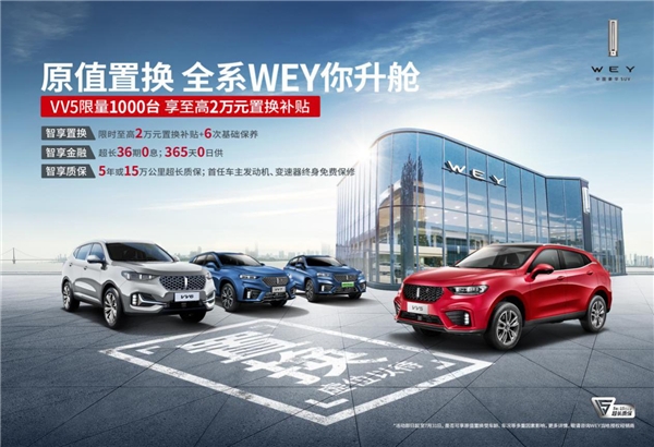 看到这样的购车福利,你是否与我一样,心动指数也直线飙升了呢?别着急,现在入手VV5的车主,还可享受由WEY品牌推出的双超质保服务:5年或15万公里超长质保,首任车主发动机、变速器终身免费保修的双超质保服务。