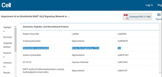 更重要的是,资料显示,在2018年的顶级科学期刊《CELL》上发表的——关于NAD+能够逆转血管衰老的论文中【3】,大卫·辛克莱(David Sinclair)教授当时所用的实验原料就是赛立复的一代原料,原料被选作实验原料且发布重磅论文,赛立复的有效性毋庸置疑。