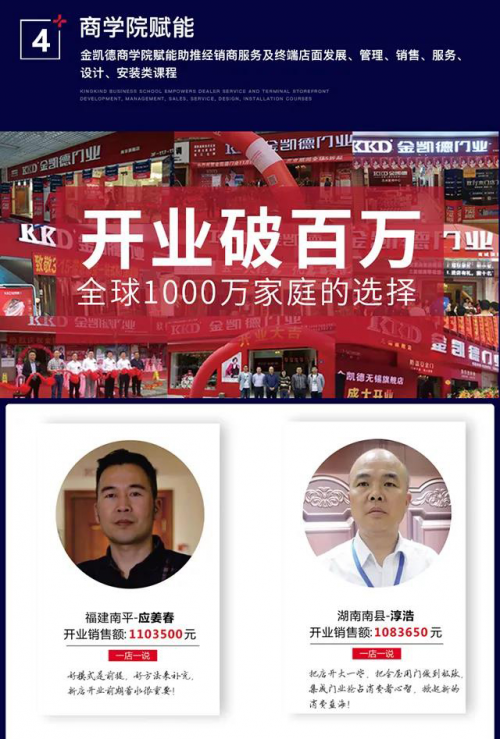 今年5月,金凯德顺应市场需求,看准发展时机提出了的“1+N战略”向经销商抛出橄榄枝,“百万赋能,逆袭成长”的计划便应运而生,“1”为旗下的金品质和金标准的核心竞争力产品,“N”则是多赋能渠道。金凯德木门为伙伴们精心推出365s倍速盈利系统,帮助经销商们在竞争激烈的市场中实现同舟共济、共谋成长。3大平台、6大帮扶支持、5大保障都将是销商低于市场洪流的有力屏障,用集团企业力量推动厂商一体化服务、运营、发展,