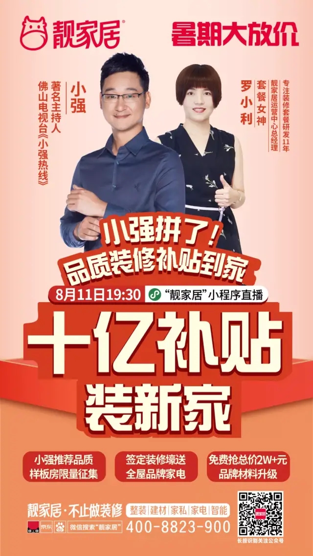 直播期间,小强将携手靓家居套餐女神罗小利,联合推出《小强推荐品质样板房》,凡是签定了小强推荐品质样板房的客户,都可以享受劲爆福利哦!