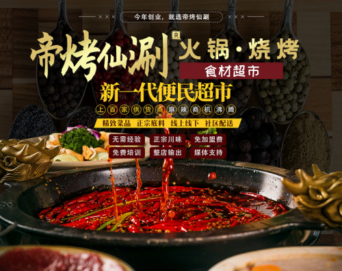 帝烤仙涮火锅烧烤食材超市,扎根食材行业多年,具备食材提供实力及相关资源的整合能力,是国内首屈一指的一站式火锅烧烤食材超市品牌!单在今年7月就连开了多家连锁店,不但生意非常红火,还从中积累了丰富的门店运营经验!