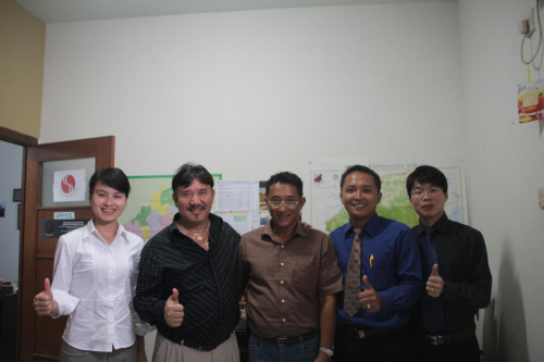 (图:廖献云在海秦花游乐设备展与同事合影)