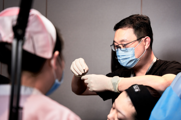 在培训现场,郑罡专家当众十分详细地讲解了当下医美注射技术,包括操作要点与注意事项,并为志愿者进行面部设计,亲自演示注射的规范操作流程和细节。在场者无不倾听,与专家互动。