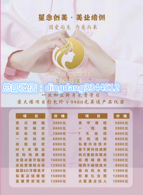 星念创美平台创立多年,旗下涵盖了数十种技术和加盟项目。作为专业的大型综合创业技术平台,星念创美包括了星念国际连锁整形医院、医美抗衰产品生产工厂、美业技术培训公司、拓客公司、美妆连锁学校等等,2020上半年很多行业都受到了冲击,如果想要在下半年扳回一局的话,可以考虑加盟星念创美学技术。
