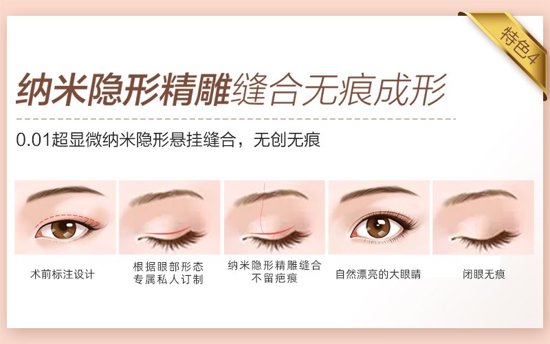1、6D隐痕明星眼,以眼部美学标准为基础,根据客观条件及美学要求精细化设计,实现差异化、定制化的综合美眼;