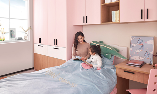 一切家居空间的存在必有其合理性,孩子的童年不可复制,为孩子提供一个健康舒适的成长环境十分有必要。柏厨集成家居对儿童房空间的思考正是以此为出发点,充分考虑到孩子的成长轨迹,给孩子们提供一个可以伴随成长的休息、学习和玩乐的幸福空间。