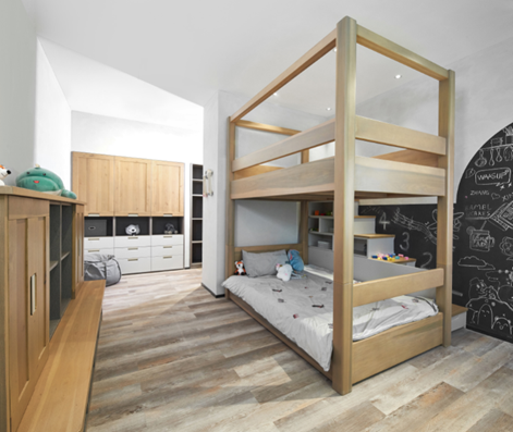 柏厨集成家居北纬60°传递的是原森态,慢生活的生活理念,健康和幸福是基本的追求。近些年人们对家居产品环保健康性能的要求越来越严格,柏厨对生活的关爱,从健康材质的严苛要求开始。北纬60°门板基材采用MDP(进口全松板),环保可达美国CARB-P2环保认证标准,此标准是复合木制品环保最严格的标准之一,是对孩子健康的最强守护。在空间配置方面,北纬60°儿童房采用的开放式设计,且上下铺的设计,让孩子通过楼梯收纳柜就可以到达一个隐秘的玩耍空间,即便是有两个孩子的二孩家庭,这样的设计也完全能满足需求。书桌被安置在窗边,不仅光线充足,在孩子学习累的时候还能抬头看看窗外的美景放松眼睛,你所担心的一切,柏厨都先一步为您考虑到,并呈现在产品设计之上。