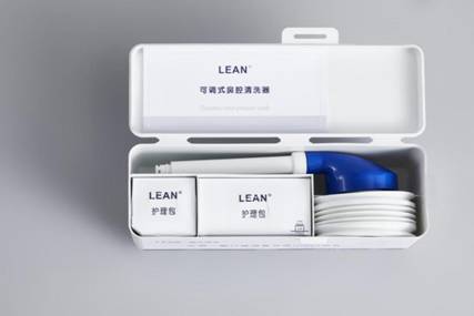此外,lean乐恩洗鼻器区别于其他产品,其喷头的专利设计可以躲避鼻阈对水流的阻挡,能够实现额窦及上鼻道位置的冲洗,上鼻道因为呼吸气体呈涡流状故而容易沉积附着过敏原,导致过敏症状久治不愈,传统的外置喷头受鼻阈阻挡效应水流只能灌洗进入鼻腔无法有效达到此位置的。过敏性鼻炎患者可以使用鼻腔庭内置非轴向出水喷头(L型喷头)冲洗上鼻道,有助于清除蓄积在上鼻道不容易被清除的过敏源;鼻窦炎患者手术前可以使用鼻前庭内置轴向出水喷头(A型喷头)进行冲洗,水流作用于复合引流口帮助窦体分泌物引流。鼻内镜手术后,可使用针对不同手术部位的喷头进行冲洗,如鼻腔庭内置非轴向冲洗喷头( L型喷头)、鼻前庭内置蝶筛冲洗喷头S型喷头)、鼻前庭内置上颌窦冲洗喷头(H型喷头)。