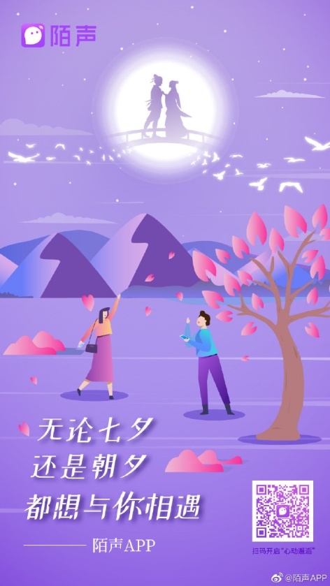 农历七月七一年一度的中国情人节也是全民爱情的狂欢节,在这一天无论是情侣还是单身人士,几乎都会表白自己的心动异性。一段深情而真挚的爱情表白,可以瞬间让争吵或冷战的情侣和好如初,能够让沐浴爱情春光的恋人如胶似漆,更能够让身单影孤的单身人士快速脱单!作为国内超过7000万单身人士都在玩的超级手机脱单神器和专业化程度最高的大众婚变服务平台,陌声APP认为像七夕情人节这样全民爱情狂欢的特殊节日,表白和求婚是最能够打动异性的浪漫情感表达。