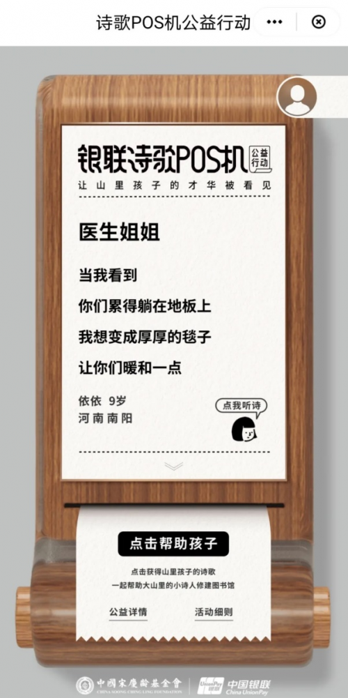 中国银联诗歌POS机公益行动