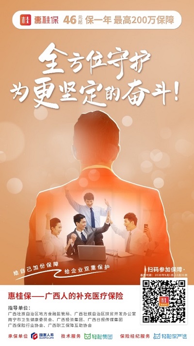首先,保费低,保额高。按年龄段不同,“惠桂保”一年的保费分为三等,0-39岁(含)每人每年46元,40-59岁(含)66元,60岁以上的老人也仅需96元,合计下来一天的保费最高不超过3毛钱。保费很实惠,保额却并不低。“惠桂保”的保障范围一是社保目录内住院医疗的个人负担部分,报销比例高达80%,最高可报100万元;二是针对广西地区11种高发特定疾病,社保目录外的住院治疗费用,“惠桂保”仍然提供80%、最高100万元的报销额度。合计下来承保金额最高达200万元。可以说,企业一份暖心的付出,就能让员工体会到大大的关怀和归属感。