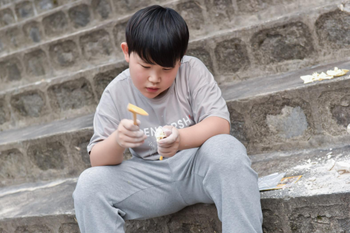 而现场的仿真模拟科考游戏则极大地激发了小朋友探索未知的兴趣。小朋友们领取科考化石之后,在爸爸妈妈的帮助下,使用仿真挖掘工具慢慢挖出“恐龙骨架”,既锻炼了耐心和动手能力,又建立愉快的亲子互动。
