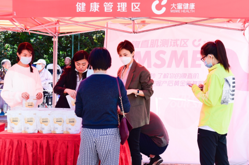 大蜜健康创始人金紫亦女士,也来到活动现场,与前来与会的居民共同探讨健康话题,吸引了大批前来参与活动的年轻女性和妈妈群体,金紫亦用自己的亲身经历为现场众多妈妈们解答关于产后瘦身的问题与困扰,并与大蜜健康的教练一起,现场为妈妈们测试产后恢复情况。