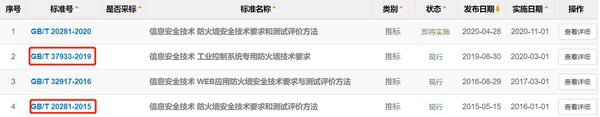 今天,天地和兴将通过比较两个现行的防火墙相关标准GB/T 28201—2015和GB/T 37933—2019的部分内容,带你深入了解工业控制系统专用防火墙。