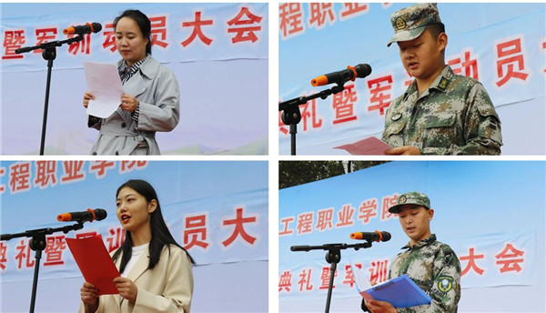 教师代表机电工程学院沈羽、施训教官代表王晓龙、老生代表经济与管理学院2019级会计专业黄佳、新生代表信息工程学院2020级移动开发专业李懿钊先后作了发言。(魏豪)