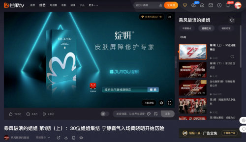 在与滕雨佳展开深度合作的同时,绽妍近期在品牌推广上持续发力,品宣活动更是动作不断。在新媒体端,不仅联手国内顶尖的医学科普专业平台——丁香医生,上线《听皮肤的话》等微综艺,还携明星单品皮肤修护敷料(简称“蓝膜”)广告上线《乘风破浪的姐姐》,在全网获得了累积突破1亿的曝光。