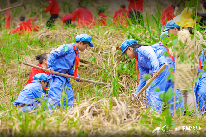 现场还有一道亮眼的风景——身穿红军服的青少年志愿者们丝毫不弱于成年人的“专业度”。小志愿者们分工合作、配合默契,有挥锹培土的,有踩实提苗的,有说有笑,热火朝天。小红军们还化身“自来水”表示“回学校后还要给身边的同学分享参加植树的经历和心得,动员同学们积极参与植树造林活动。