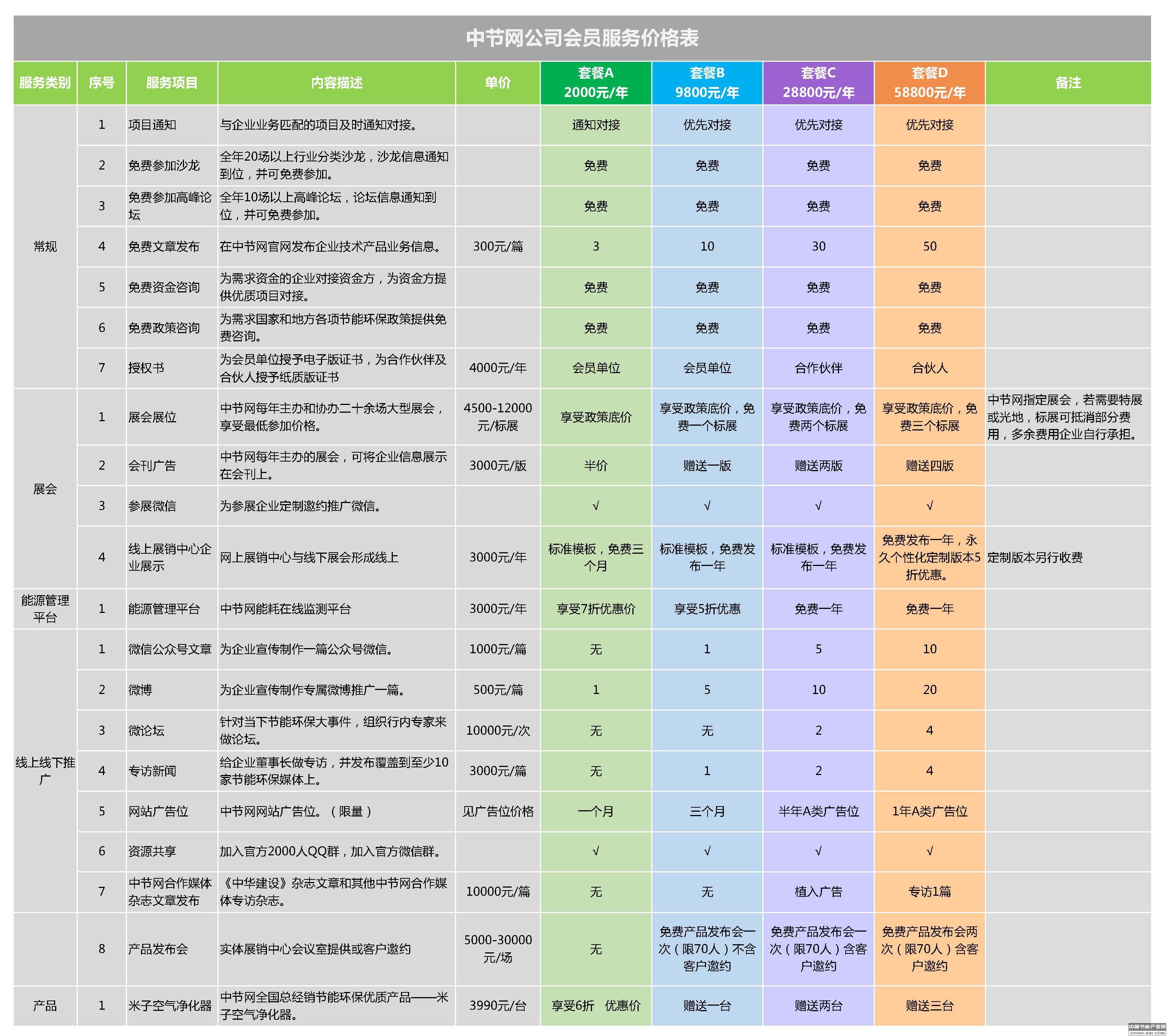 中节网公司会员服务价格表