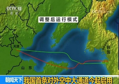 民航局空管局表示,中韩空中大通道新辟及调整国内、国际航线6条,里程1100公里,调整城市对班机航线455条。经评估,中韩大通道实施后,渤海湾区域飞行容量将提升约45%,安全风险将降低约42%。