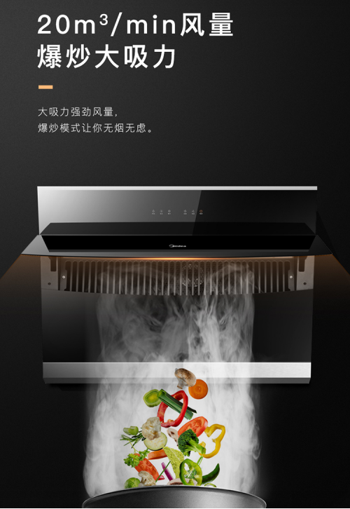 美的J57油烟机外观全部采用黑晶钢化玻璃面板,加上高灵敏度的触控面板和灵动的透光按键,彰显时尚品味,百搭各种家居场景,无需担忧与家装风格有冲突之处。同时易于擦拭,烹饪完毕后顺手用抹布轻轻一抹,细腻不留水渍。值得一提的是,美的J57油烟机宽度达到了800mm,大大的提高了拢烟范围,控烟区更大,进一步提高吸烟排烟的速度,让油烟无处可逃。
