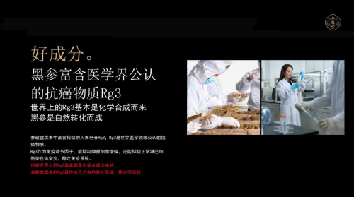 参敬堂黑人参稀有皂苷Rg3、Rg5、Rk1含量占总皂苷的80%以上,是普通人参的100倍以上