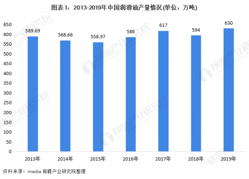 据统计,我国在2019年润滑油产量约为630万吨,表观消费量达到648万吨,其中车用润滑约占润滑油消费总量的58.5%。伴随着经济社会的稳定发展,人们购车需求旺盛,加上新能源汽车对消费的刺激,未来汽车保有量仍然快速增长,进而带动润滑油市场的持续增长。