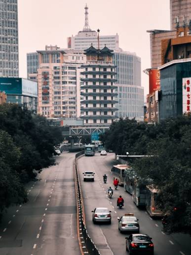 一张郑州极具特色的城市街景图