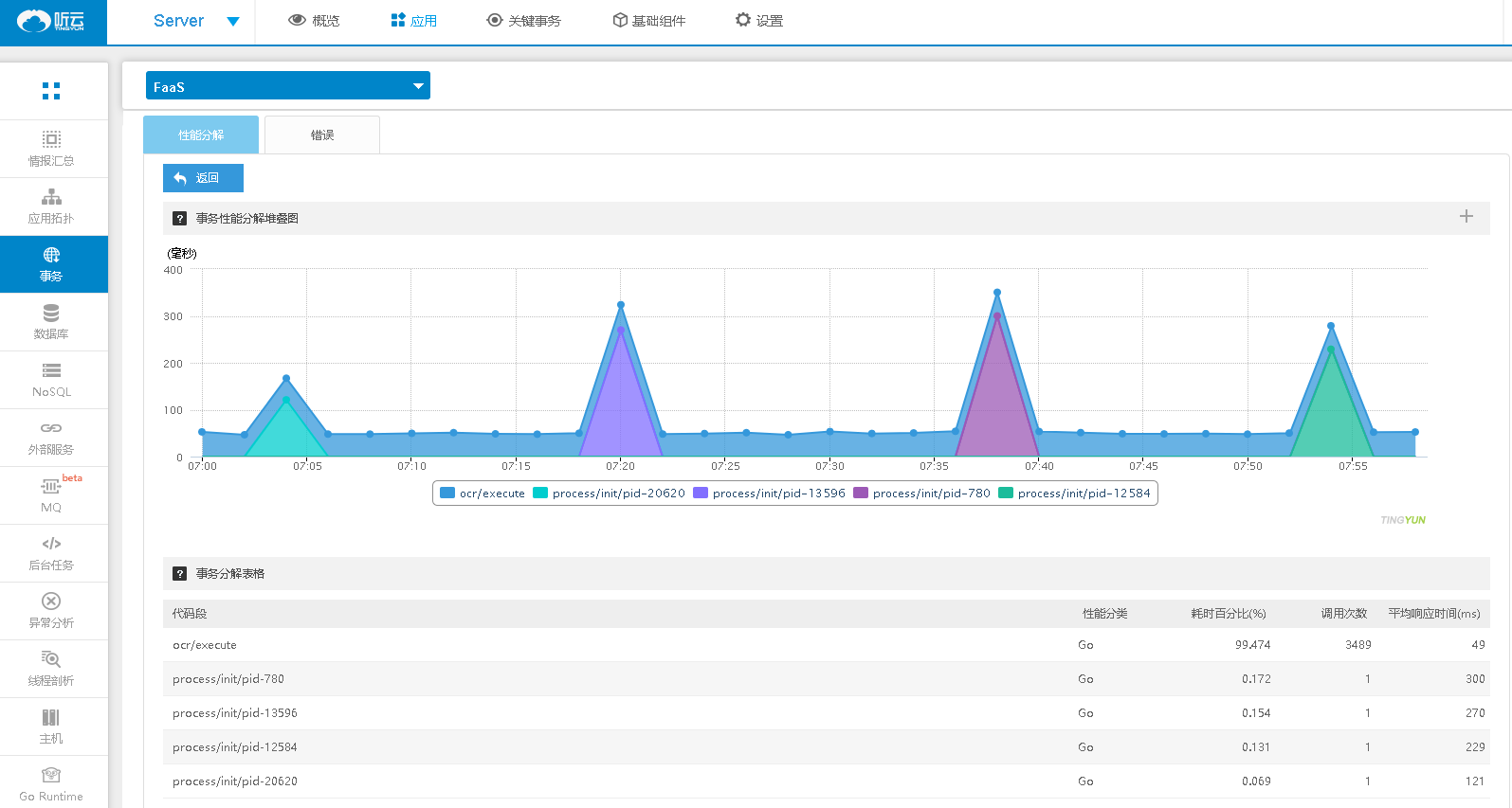所有FaaS和BaaS运行的云资源,听云APM均可以监控,并提供丰富的指标。