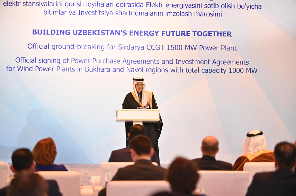锡尔河州1500兆瓦燃气联合循环电站的动工仪式及随后的布哈拉和纳沃伊两个风电项目的购电协议和投资协议签约仪式正式举行,出席会议的嘉宾包括乌兹别克斯坦共和国副总理兼投资和对外贸易部部长萨多尔-乌穆尔扎科夫(H.E. Sardor Umurzakov)阁下、乌兹别克斯坦能源部部长阿利舍尔-苏塔诺夫(H.E. Alisher Sultanov)阁下。此外,沙特阿拉伯投资部部长哈立德-法利赫(H.E. Eng Khalid Al-Falih)阁下和沙特驻乌兹别克斯坦大使希沙姆-米沙尔-苏瓦伊勒姆(H.E. Hisham Mishal Al-Suwailem)阁下率领沙特阿拉伯代表团参会。其他与会者还包括来自乌兹别克斯坦能源部、投资和对外贸易部、ACWA Power和空气产品公司的高级代表。