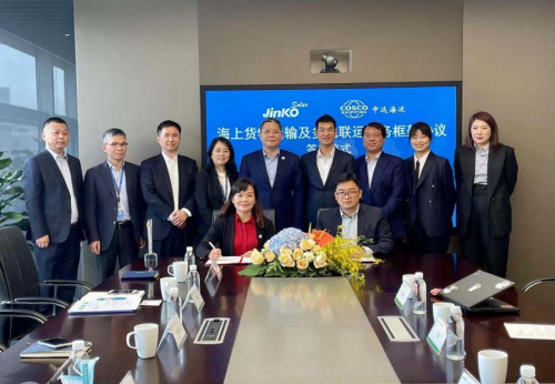 近日,晶科能源与中远海运集装箱运输有限公司((以下简称“中远海运”)于上海举行战略合作会议,并签订了海上货物运输及多式联运服务框架协议,围绕进一步拓宽海上物流通道,健全沟通机制,升级合作伙伴关系等双方达成了一致。本次战略合作协议由晶科能源副总裁郭亦桓和中远海运集运全球销售副总经理陈莉签署,晶科能源CEO陈康平,全球物流高级总监朱巍,中远海运集团副总裁张炜,中远海运全球各大区贸易负责人等出席了此次签约仪式。