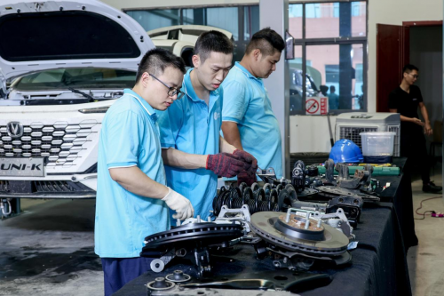 这场大考的“监考员”是来自通用技术中国汽研第三方机构的工程师,他们对测试车辆的动力总成、底盘进行了拆解,随后,两位重量级嘉宾来到现场,通过对比测试车辆拆解部件与全新配件的差异,对UNI-K的“机械素质”作出了客观、公正的评析。