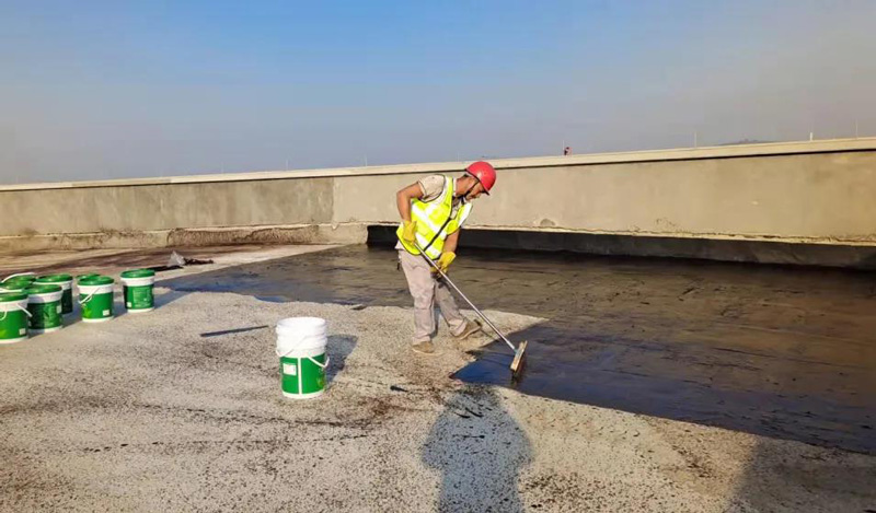(▲SGW721绿意净味水性沥青防水涂料进场)