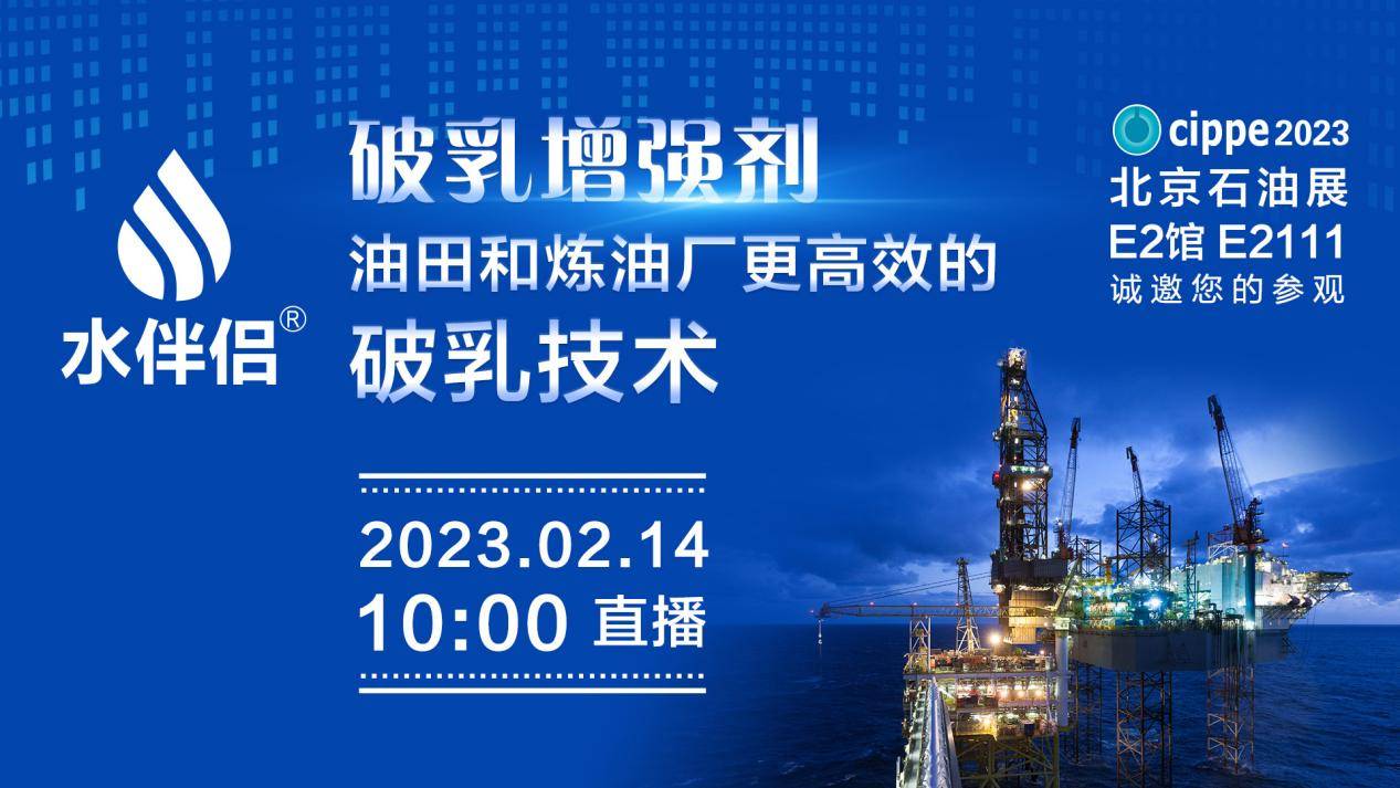 油田化学药剂在油田油气集输系统中发挥着巨大的作用,破乳技术始终追求更高效、更节能、更绿色,在油田项目中兼具环境效益与经济效益双赢。2月14日上午10:00-11:00,济南乾来环保技术有限公司的专家将亮相cippe企业直播间,并带来破乳增强剂技术和产品推介,助力石油石化产业更高效、更节能,敬请关注!