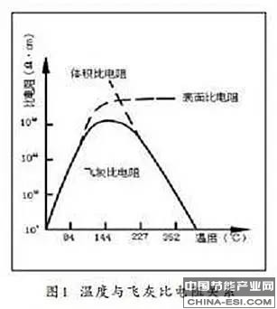 图2温度与飞灰比电阻关系